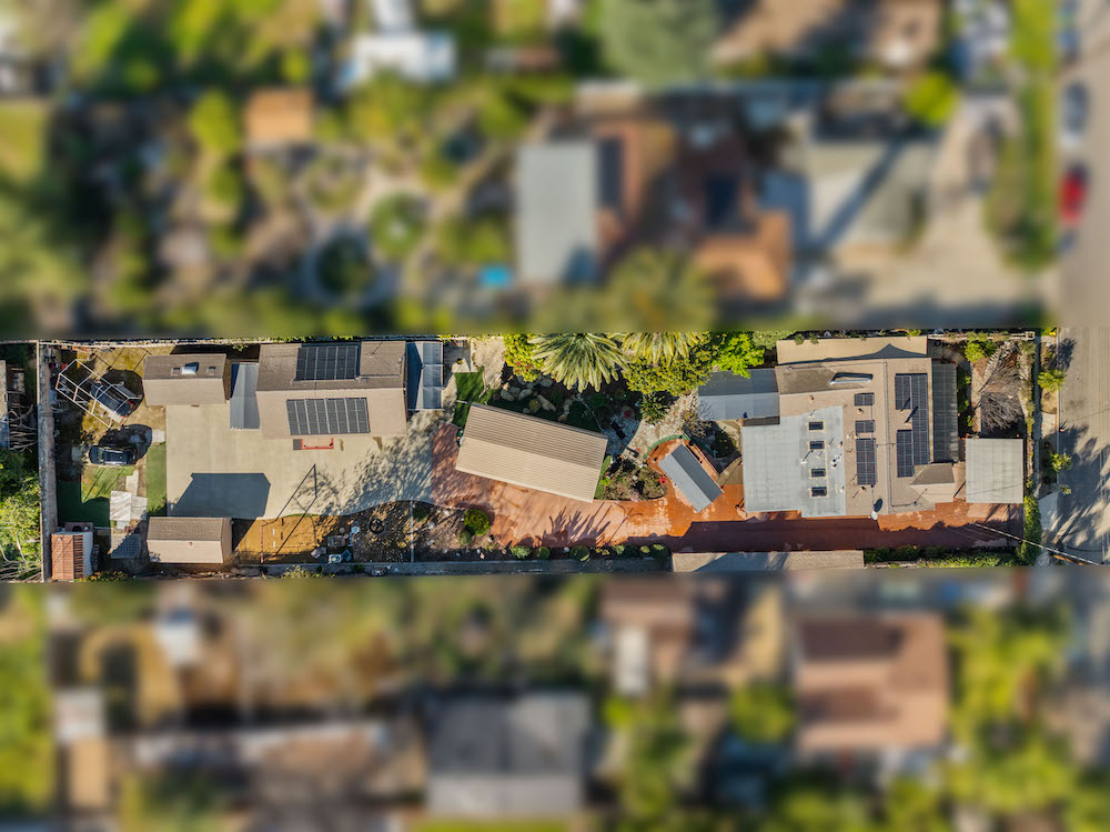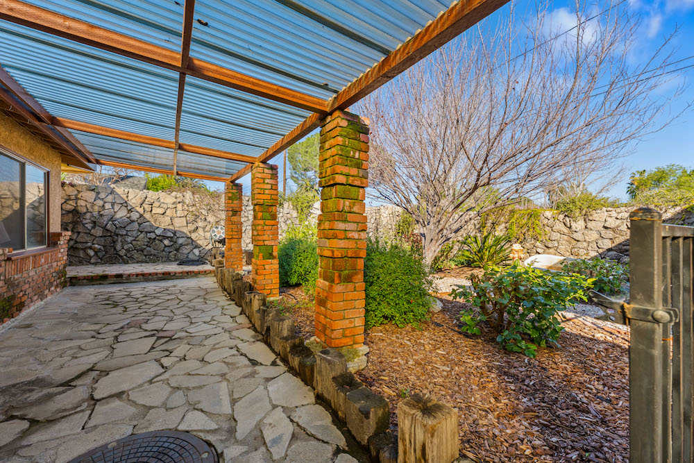 Opportunity is knocking! Bring your investors, architects, and imagination to take advantage of this 21,974 sq ft lot in Reseda Ranch. Gated Oasis frames this upgraded yet rustic house with lots of wood accents, wood floors, a wood burning stove, smooth ceilings, recessed lighting. Yet there is also granite counters, double sink bathrooms, tile spa tub & open shower with sky lights, stained glass windows, beautiful patio area, and so much more. Main house has converted garage, and carport, plus solar panels. Guest house also has solar panels, plus there are extra storage buildings. Still with lots of room for family compound, ADUs, pool, and more. Buyers to rely on their own investigation regarding permits, feasibility of best use, and number of possible homes and structures the lot can accomodate.