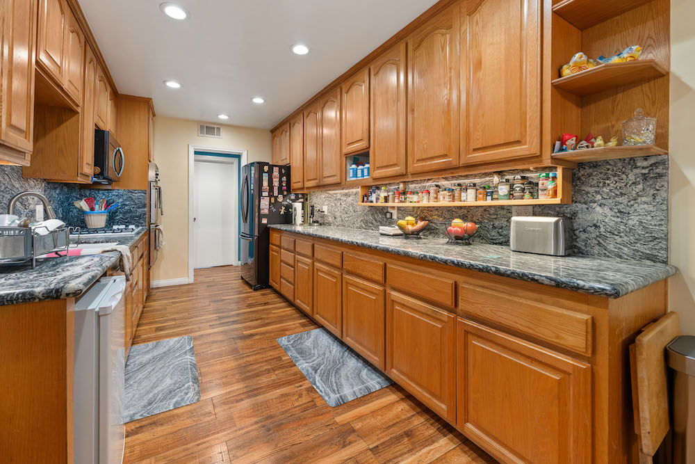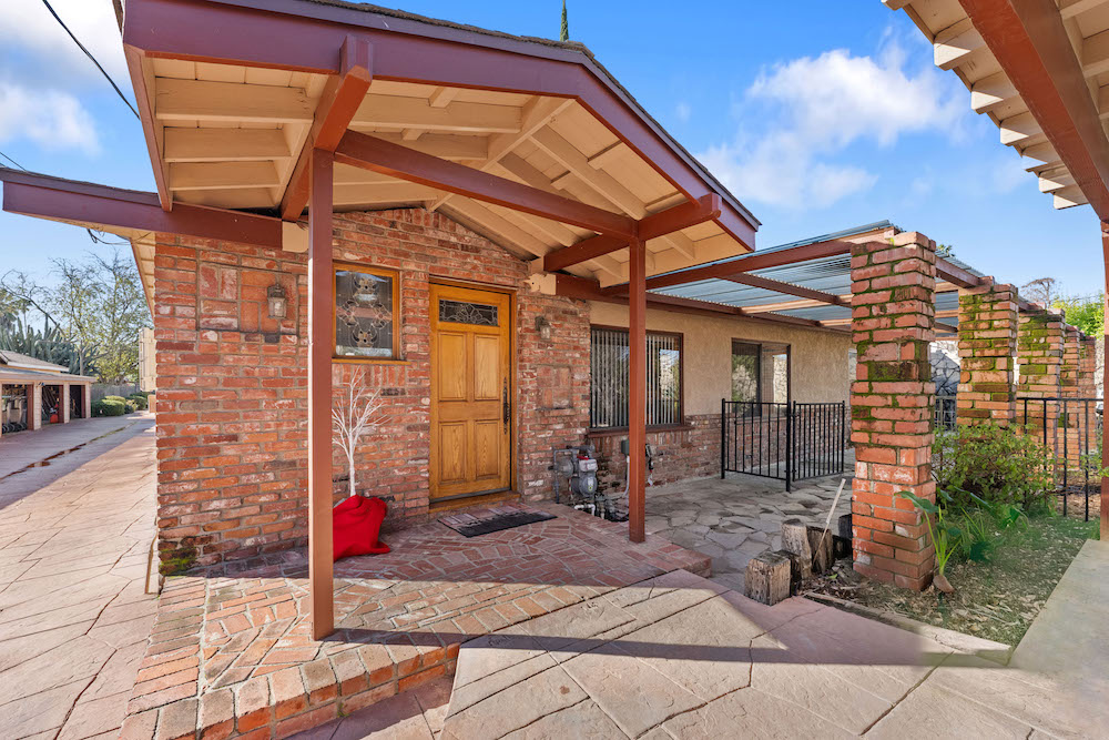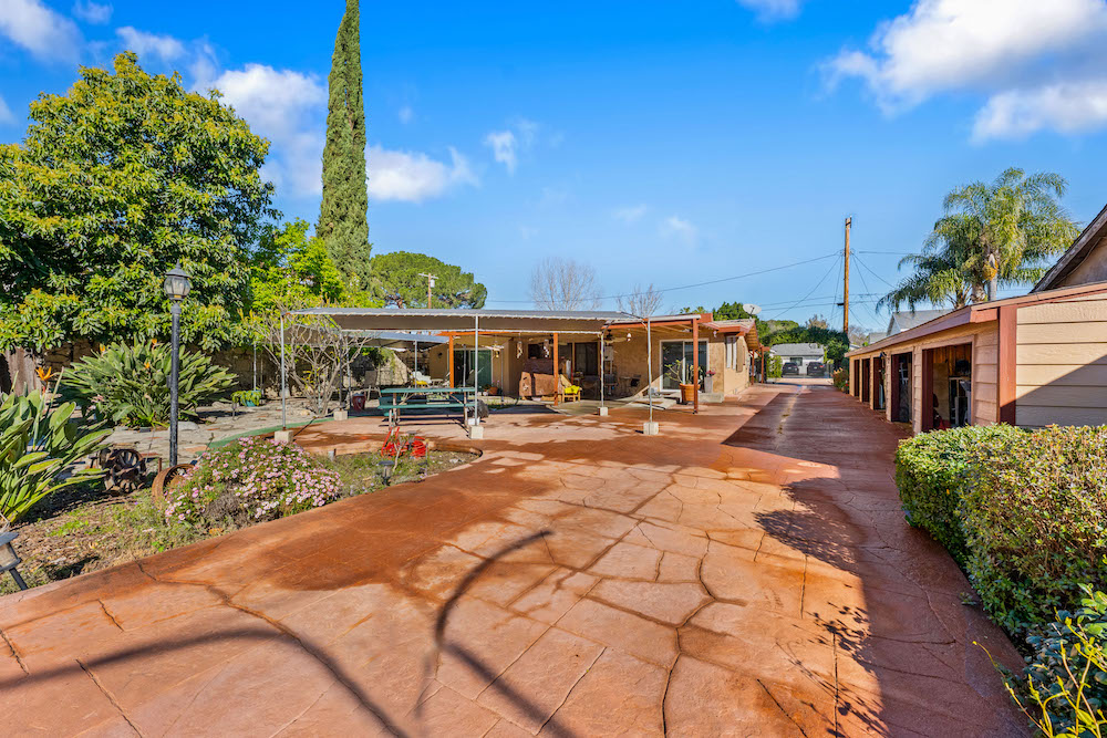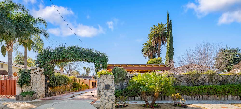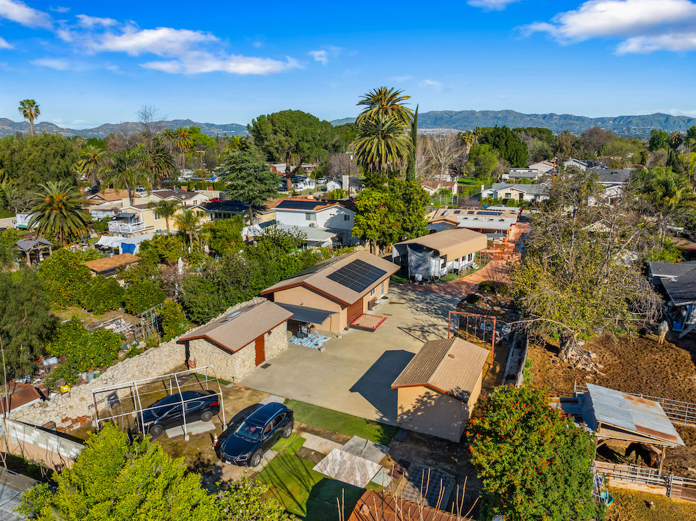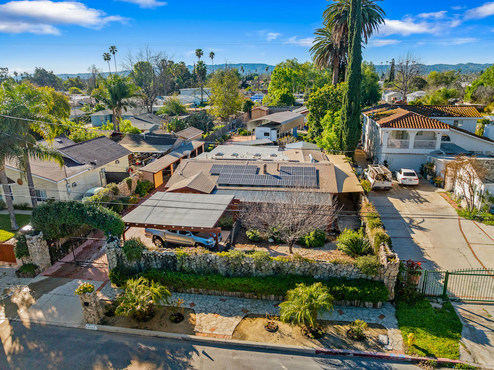 Opportunity is knocking! Bring your investors, architects, and imagination to take advantage of this 21,974 sq ft lot in Reseda Ranch. Gated Oasis frames this upgraded yet rustic house with lots of wood accents, wood floors, a wood burning stove, smooth ceilings, recessed lighting. Yet there is also granite counters, double sink bathrooms, tile spa tub & open shower with sky lights, stained glass windows, beautiful patio area, and so much more. Main house has converted garage, and carport, plus solar panels. Guest house also has solar panels, plus there are extra storage buildings. Still with lots of room for family compound, ADUs, pool, and more. Buyers to rely on their own investigation regarding permits, feasibility of best use, and number of possible homes and structures the lot can accomodate.